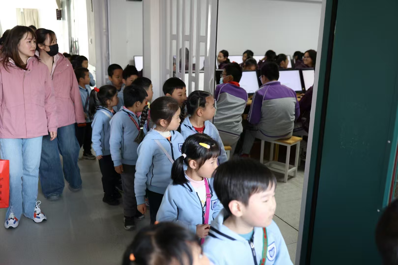 小朋友们跟随着老师一起参观了三牌楼小学的图书室与信息教室,他们被哥哥姐姐们认真专注的神情所吸引,在心中也种下了要“好好学习”的小种子。