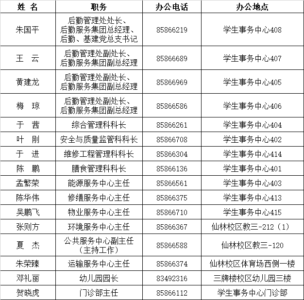 学校采用“小机关、多实体、大服务”的后勤管理体制,运用“管理契约化、运行企业化”的后勤运行机制。后勤管理处(集团)负责统筹规划、管理学校后勤事务,既:编制后勤事业中、长期发展规划,制定并组织落实后勤年度工作计划;制定后勤管理规章制度,对执行情况进行监督、检查、评估;承担餐饮服务、校园绿化卫生环境养护服务、楼宇物业服务、水电暖的运行保障服务、公车运营服务、基本医疗服务、幼儿教育服务,负责各类设施的维修、改造计划和工程管理。